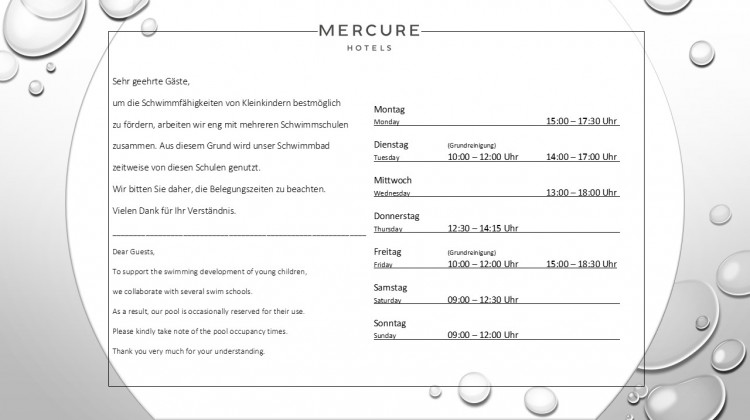Unser Schwimm- und Saunabereich ist wie folgt für Sie geöffnet: